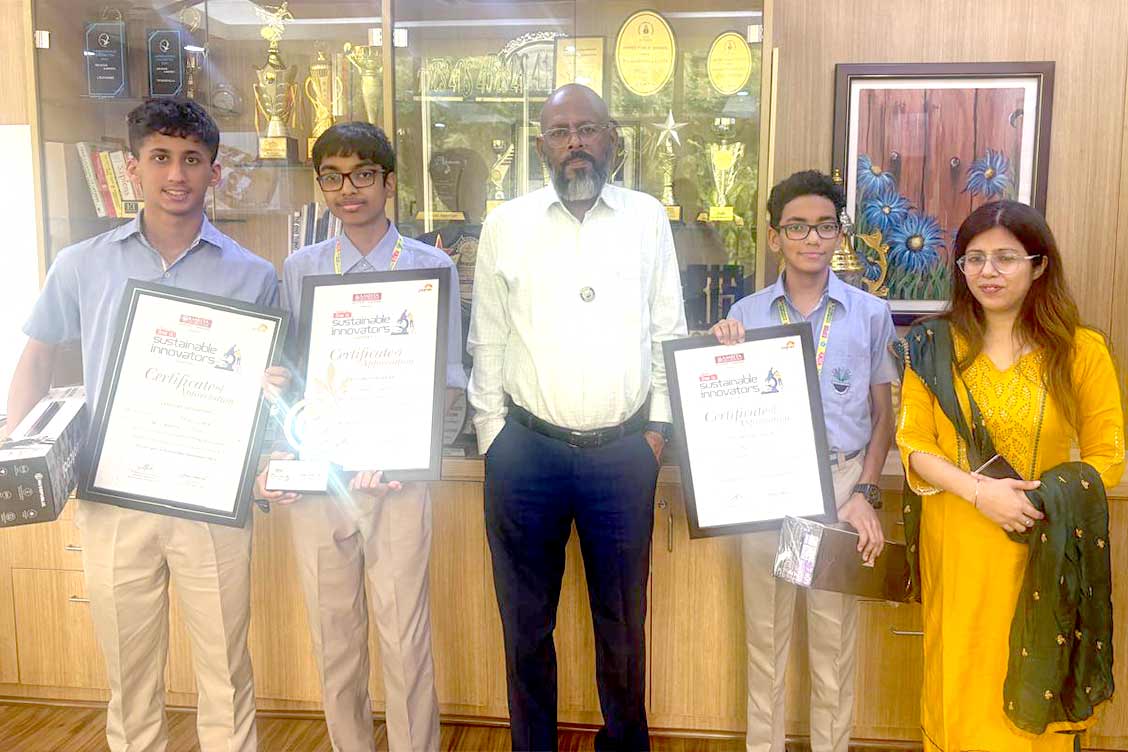 The school community extends heartfelt congratulations to Pranay, Aditya, and Aryan for this commendable accomplishment and wishes them continued success in their future innovations.