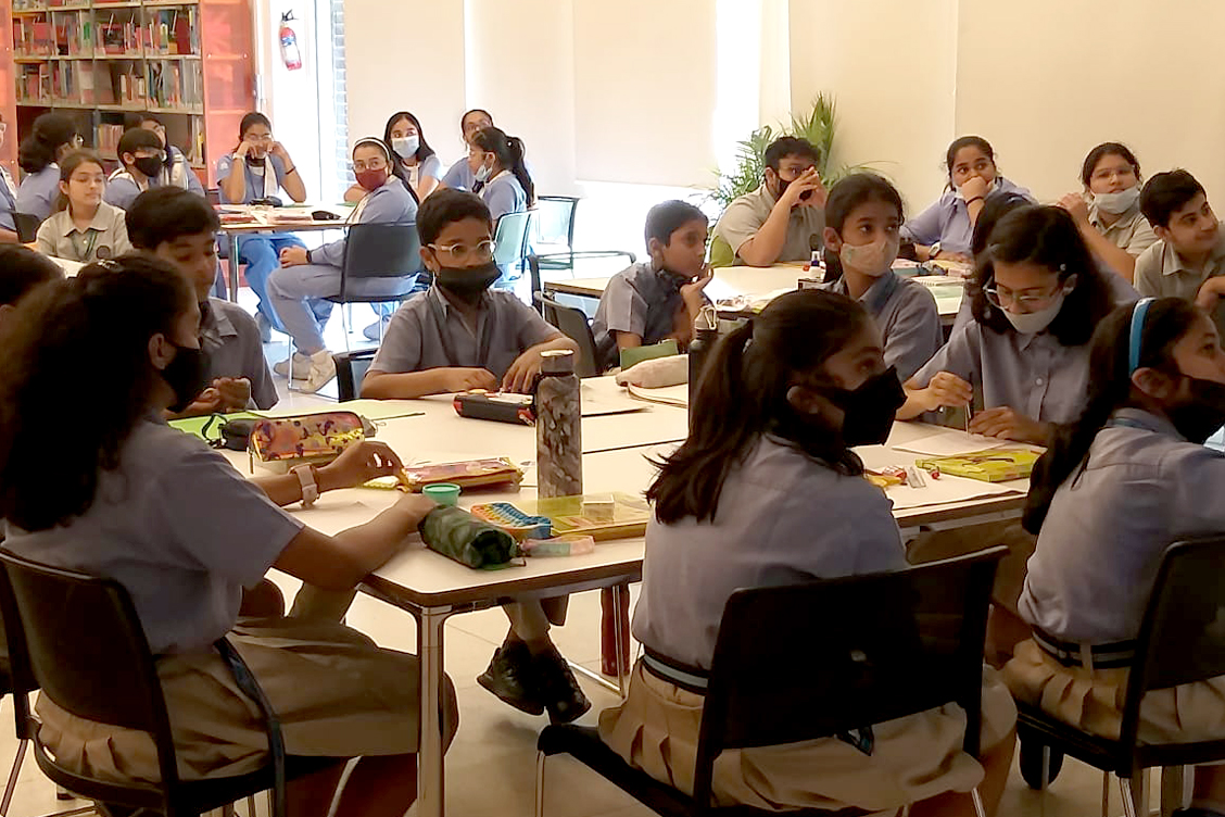 On April 21st, 2023, students from The Khaitan School in Noida, along with students from The Uttam Girls School in Ghaziabad and Venkateshwar Global School in Delhi, participated in Max Mueller Bhavan’s Flagship Activity Week. Only 10 students from each school were able to participate in the 90-minute art and craft workshop titled “Spin a Story,” which was both new and interesting.