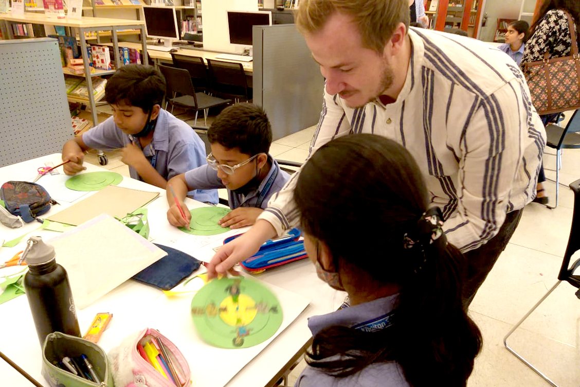 During the workshop, students were given a briefing on how to create a spin wheel featuring their choice of characters, whether human or animal. Once they had made their spin wheel, they were instructed on how to use it to create an entire story. The activity proved to be immensely enjoyable for the students, as they were able to use their imaginations to create their own spin wheels with interesting characters, and then use them to develop their own stories.