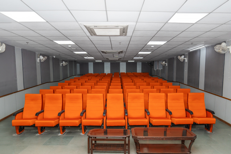Modern auditorium with professional audio-visual systems for performances and events.